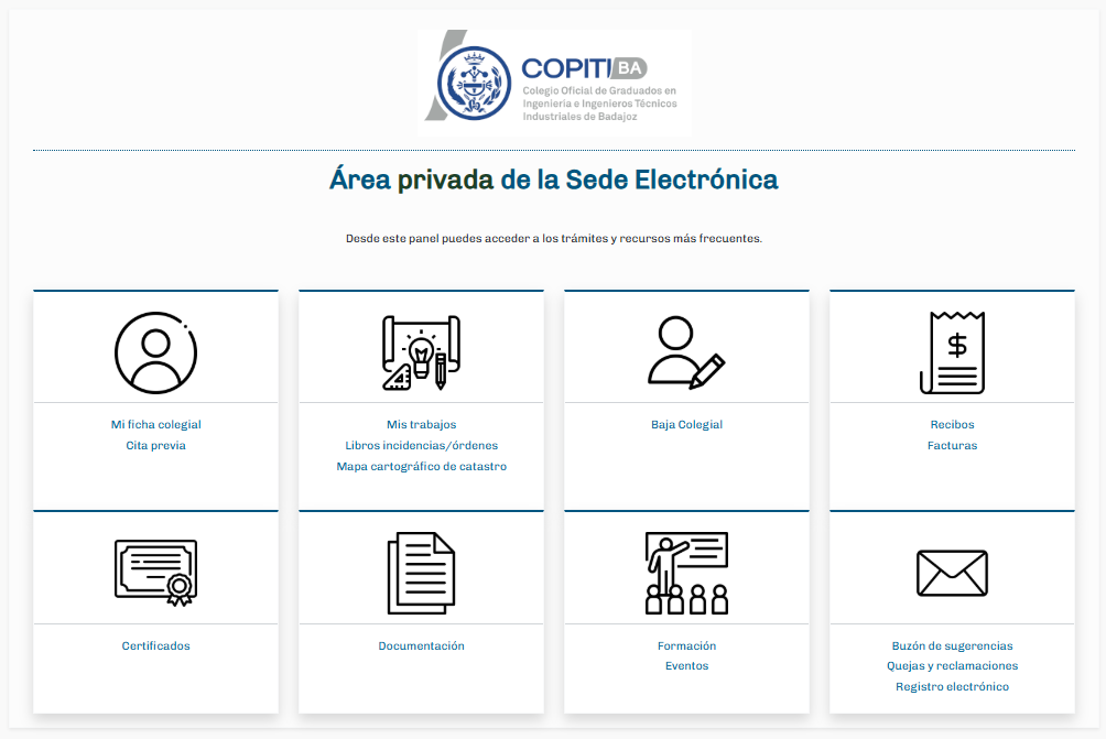 Los trámites profesionales, como el visado electrónico y la gestión de expedientes, se realizan íntegramente a través de esta plataforma, garantizando trazabilidad, seguridad jurídica y operativa.